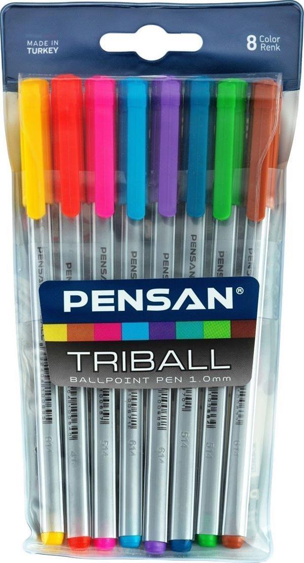 Pensan Triball Tükenmez Kalem Renkli 8'li Set